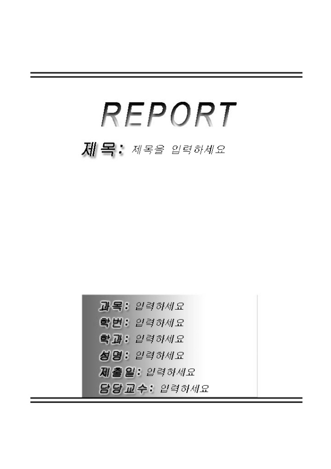 9,000원/월레포트표지(깔끔한검은두줄테두리)입니다. 레포트 제출시 앞의 표지로 사용하는 서식으로 깔끔한 검은 두줄 테두리의 모양으로 디자인되어 있습니다.