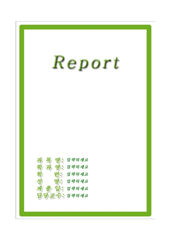 레포트표지(깔끔한초록테두리)입니다. 레포트 제출시 앞의 표지로 사용하는 서식으로 깔끔한 초록 테두리의 모양으로 디자인되어 있습니다.