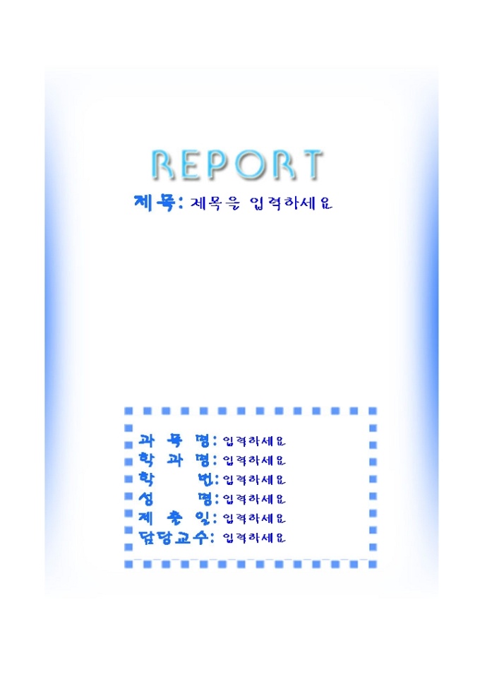 레포트표지(깔끔한파란색배경)입니다. 레포트 제출시 앞의 표지로 사용하는 서식으로 깔끔한 파란색 배경의 모양으로 디자인되어 있습니다.
