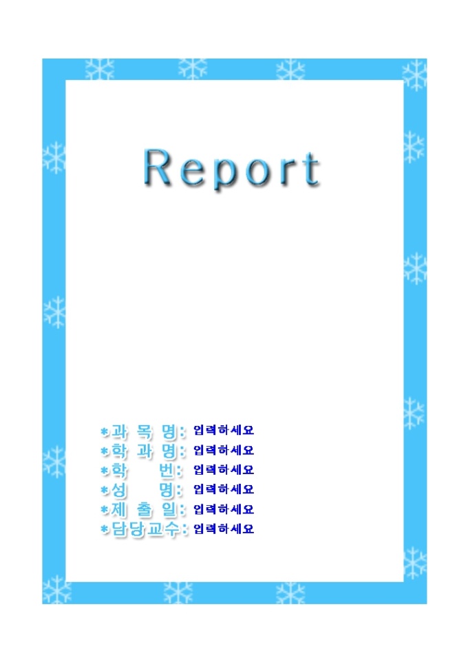 9,000원/월레포트표지(눈내리는파란테두리)입니다. 레포트 제출시 앞의 표지로 사용하는 서식으로 눈 내리는 파란 테두리 그림의 모양으로 디자인되어 있습니다.