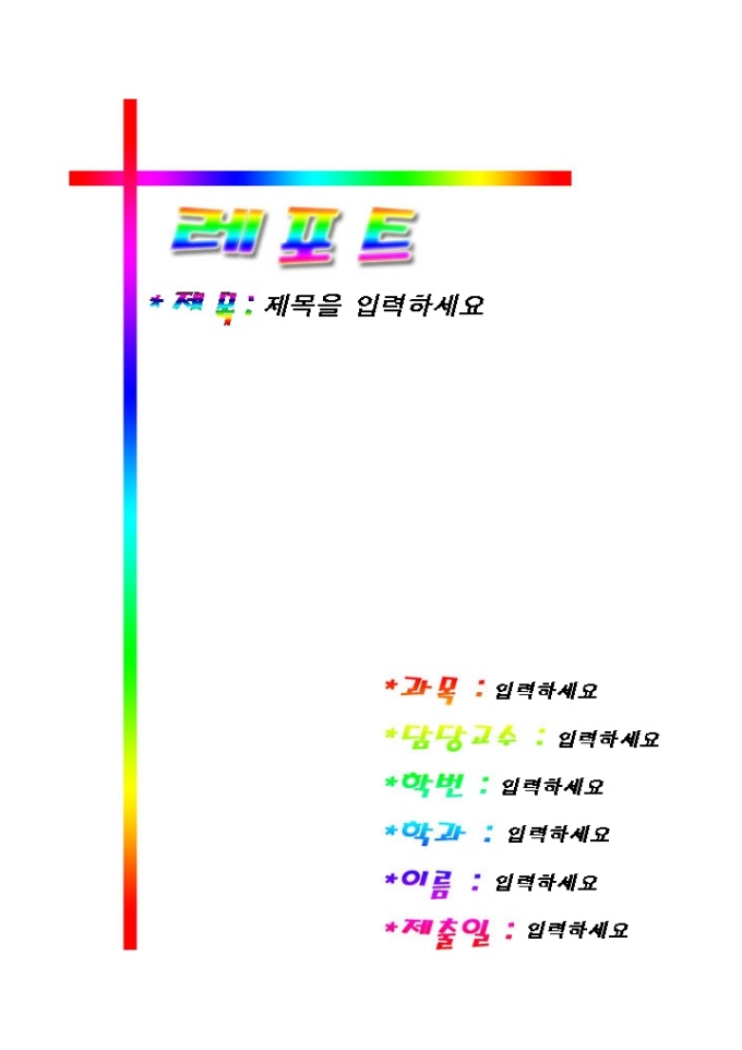 레포트표지(레인보우계열의라인)입니다. 레포트 제출시 앞의 표지로 사용하는 서식으로 레인보우 계열의 라인 모양으로 디자인되어 있습니다.
