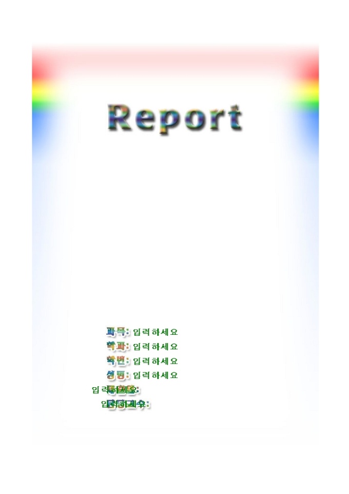 레포트표지(무지개빛테두리)입니다. 레포트 제출시 앞의 표지로 사용하는 서식으로 무지개빛 테두리그림의 모양으로 디자인되어 있습니다.