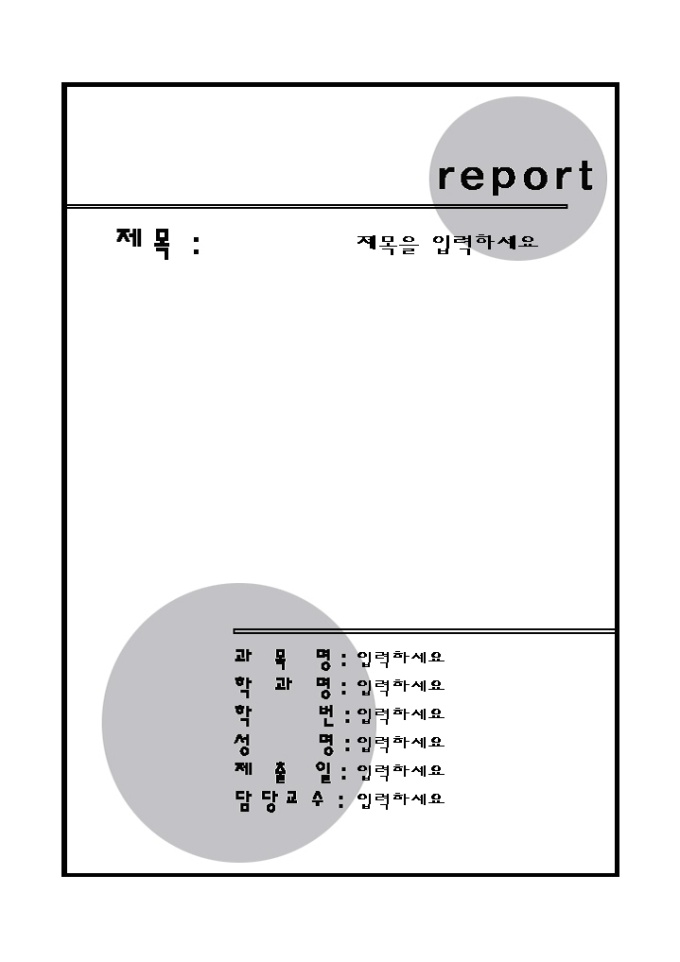 9,000원/월레포트표지(심플한회색원) 레포트 제출시 앞의 표지로 사용하는 서식으로 심플한회색원의 모양으로 디자인되어 있습니다.