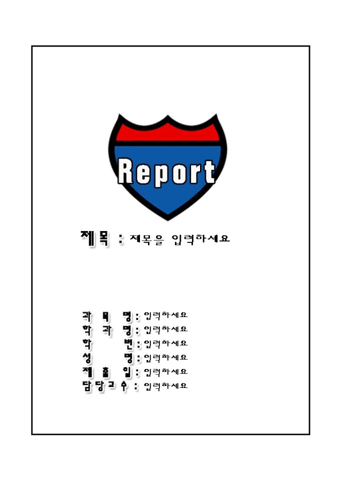 레포트표지(방패마크그림)입니다. 레포트 제출시 앞의 표지로 사용하는 서식으로 방패 마크가 그려진 그림의 모양으로 디자인되어 있습니다.