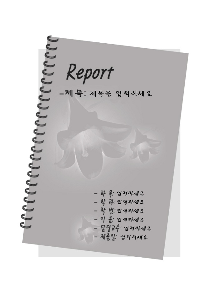 레포트표지(백합꽃들어간연습장표지)입니다. 레포트 제출시 앞의 표지로 사용하는 서식으로 백합꽃이 들어간 연습장 그림의 모양으로 디자인되어 있습니다.