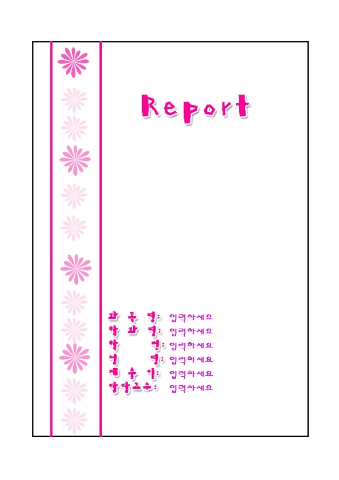 9,000원/월레포트표지(분홍꽃무늬줄그림)입니다. 레포트 제출시 앞의 표지로 사용하는 서식으로 분홍색 꽃무늬줄그림의 모양으로 디자인되어 있습니다.
