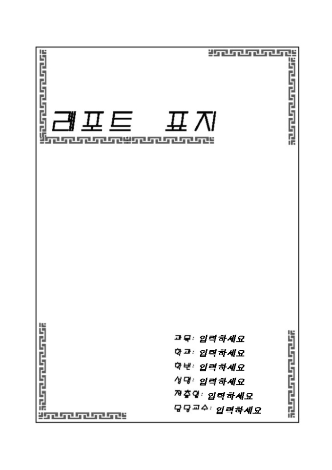 레포트표지(전통적인무늬) 레포트 제출시 앞의 표지로 사용하는 서식으로 전통적인무늬의 모양으로 디자인되어 있습니다.