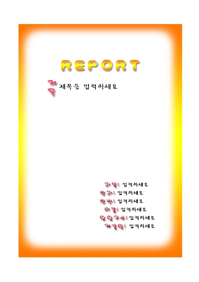 레포트표지(주황_노랑테두리) 레포트 제출시 앞의 표지로 사용하는 서식으로 주황_노랑테두리의 모양으로 디자인되어 있습니다.