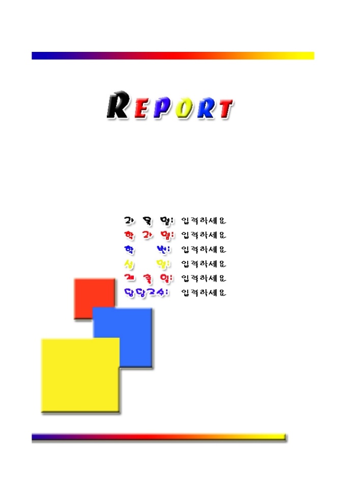 레포트표지(빨강파랑노랑색종이)입니다. 레포트 제출시 앞의 표지로 사용하는 서식으로 빨강, 파랑, 노란색 종이 림의 모양으로 디자인되어 있습니다.