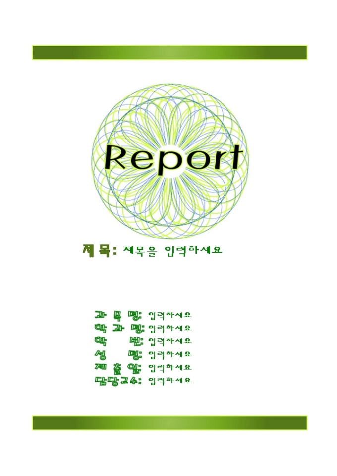 레포트표지(초록무늬그림) 레포트 제출시 앞의 표지로 사용하는 서식으로 초록무늬그림의 모양으로 디자인되어 있습니다.