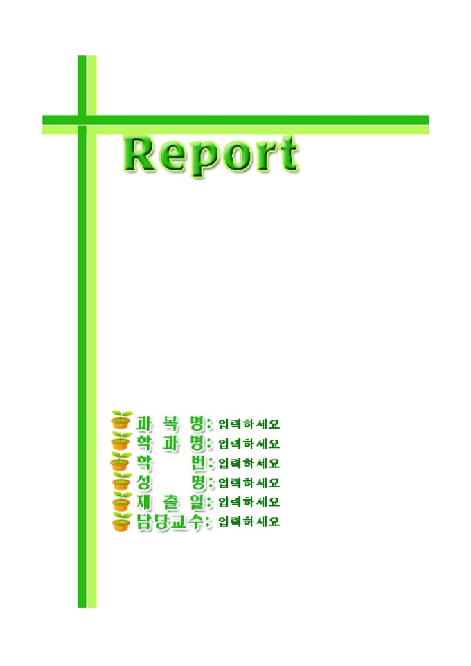 9,000원/월레포트표지(초록새싹두줄그림) 레포트 제출시 앞의 표지로 사용하는 서식으로 초록새싹두줄그림의 모양으로 디자인되어 있습니다.