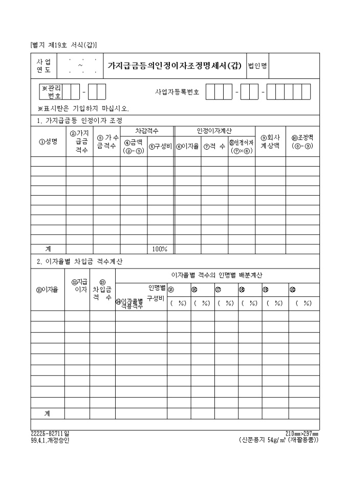 법인세법 제19호(갑)가지급금등의인정이자조정명세서(갑)