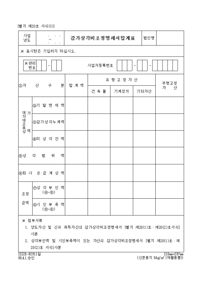 1. 양도자산 및 신규 취득자산의 감가상각비조정명세서 [별지 제20(1)호·제20(2)호서식]사본