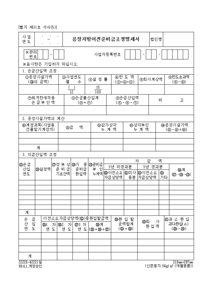 1. ①공장시설가액란은 공장시설가액란의 금액을 옮겨 적습니다.