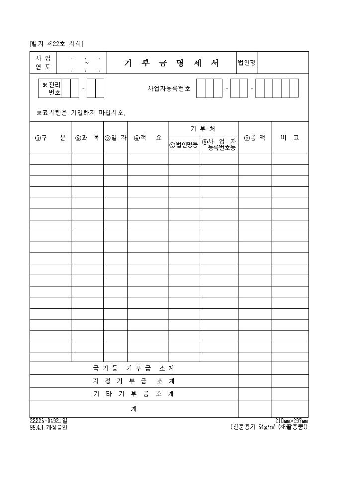 기부금명세서 양식입니다.
