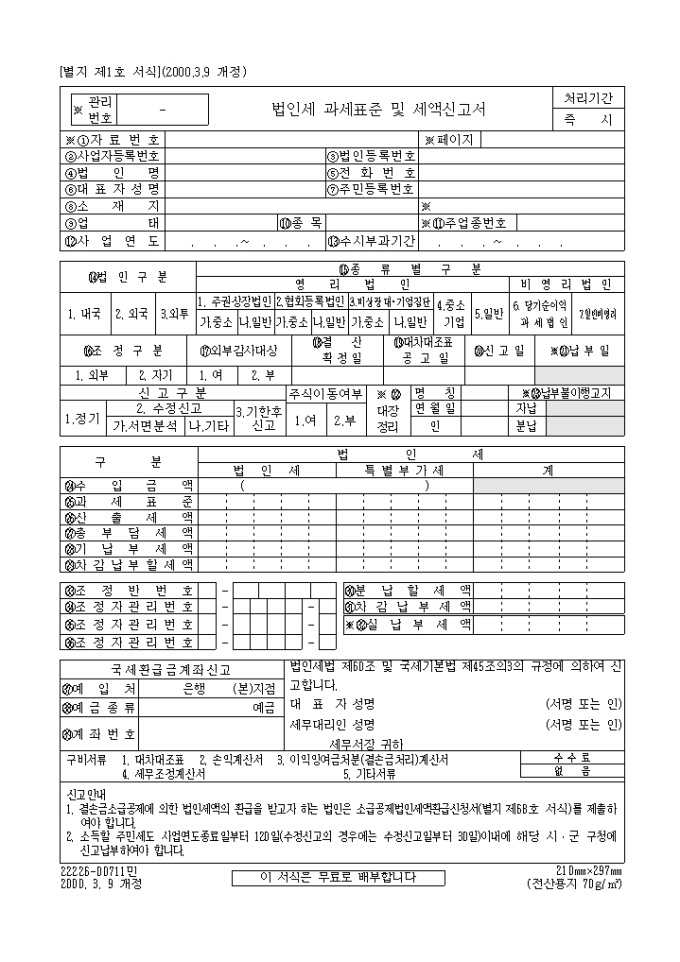법인세법 제60조 및 국세기본법 제45조의3의 규정에 의하여 신고하실때 사용하는 양식입니다.