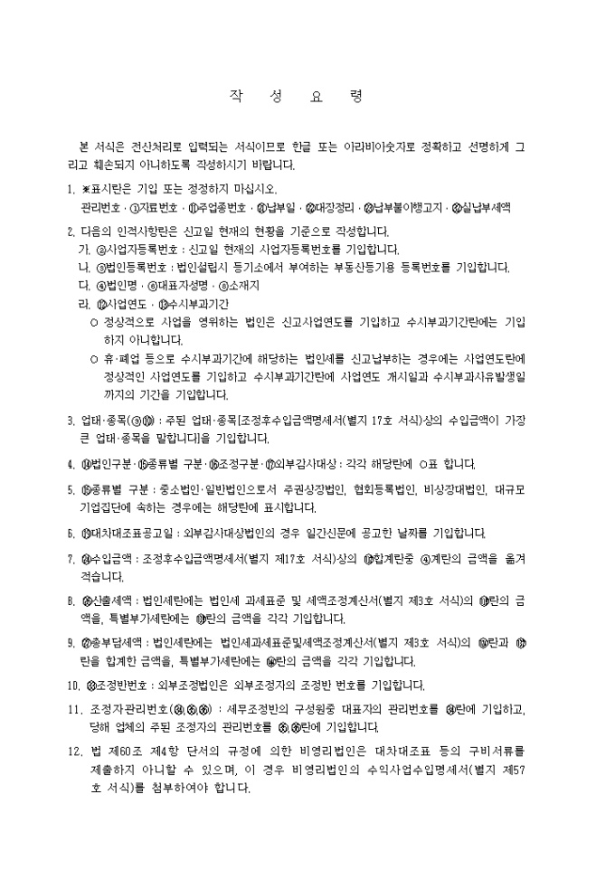 본 서식은 전산처리로 입력되는 서식이므로 한글 또는 아라비아숫자로 정확하고 선명하게 그리고 훼손되지 아니하도록 작성하시기 바랍니다.