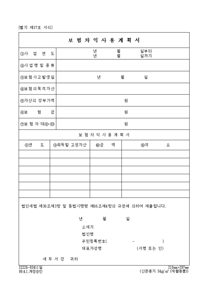 법인세법 제38조제3항 및 동법시행령 제66조제4항의 규정에 의하여 제출하실때 사용하는 양식입니다.