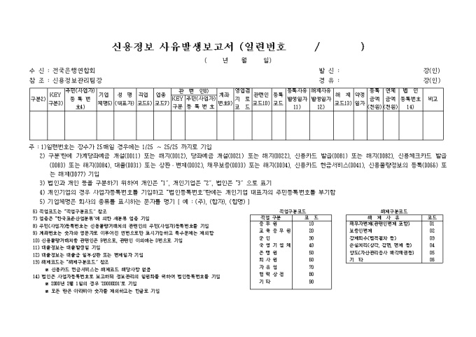 신용정보 사유발생 보고서