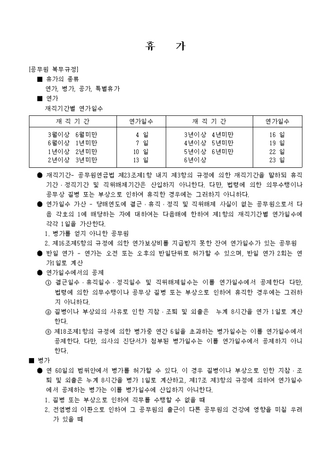 9,000원/월[사우회] 10.휴가의 종류 양식입니다. 연가, 재직기간, 연가일수 가산, 휴가일수, 유의사항에 대한 내용입니다.