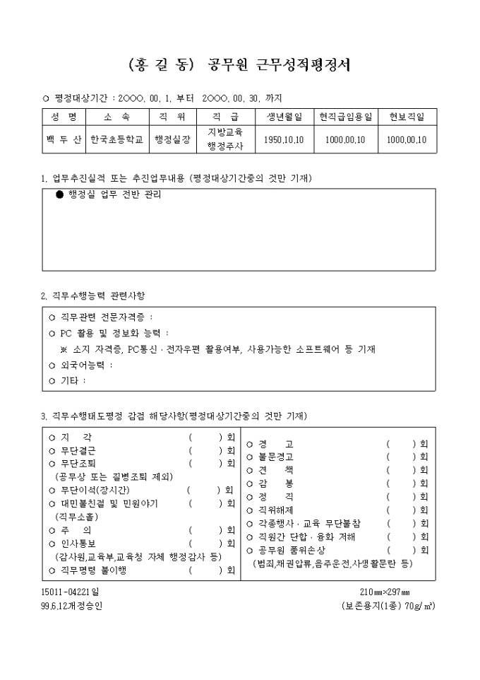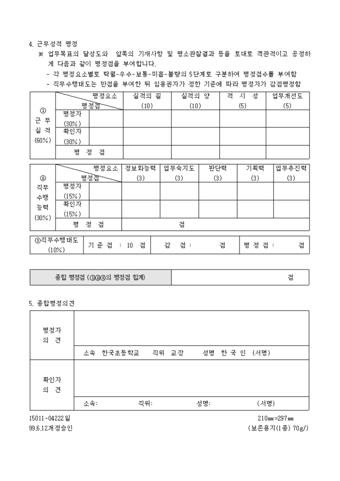 9,000원/월[사우회] 24.근무성적평정,보고 양식입니다.