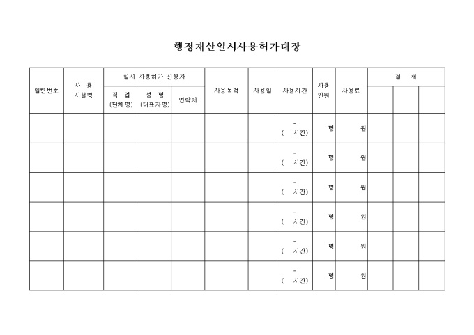 행정재산일시 사용 허가 대장