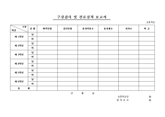 구강검사및실적보고서(초등)입니다.