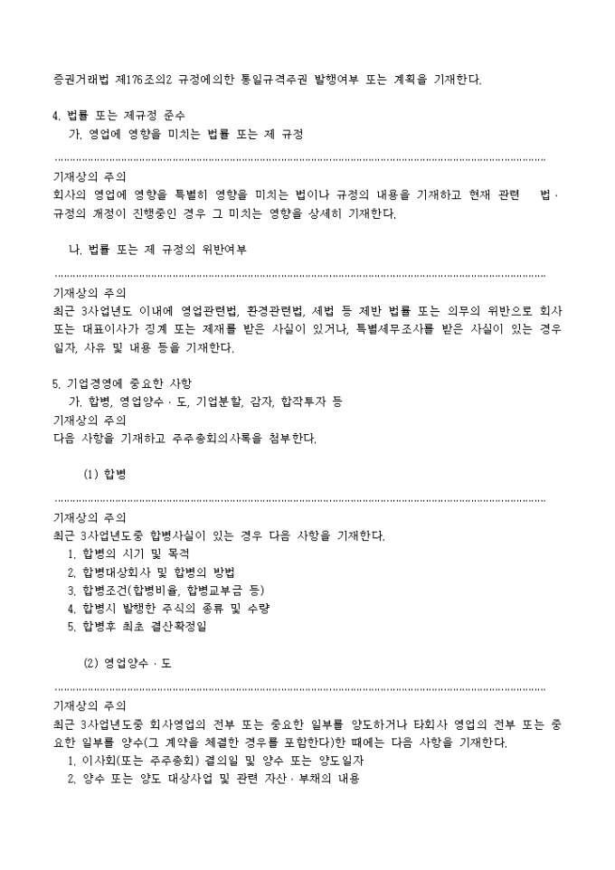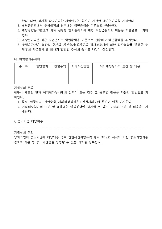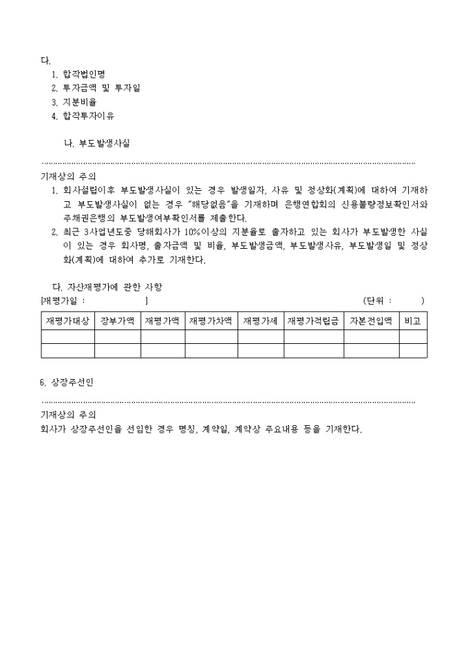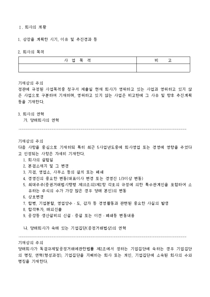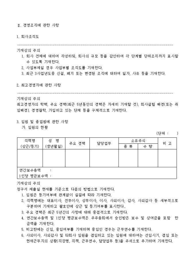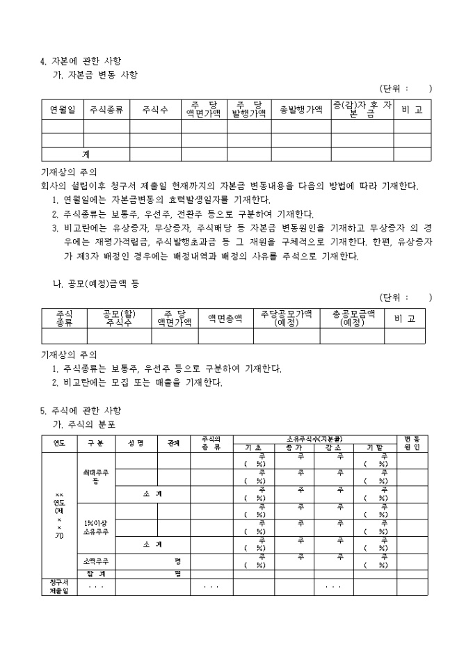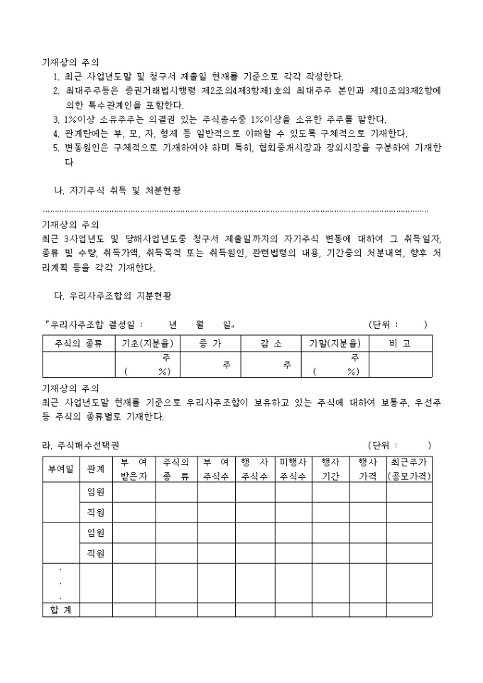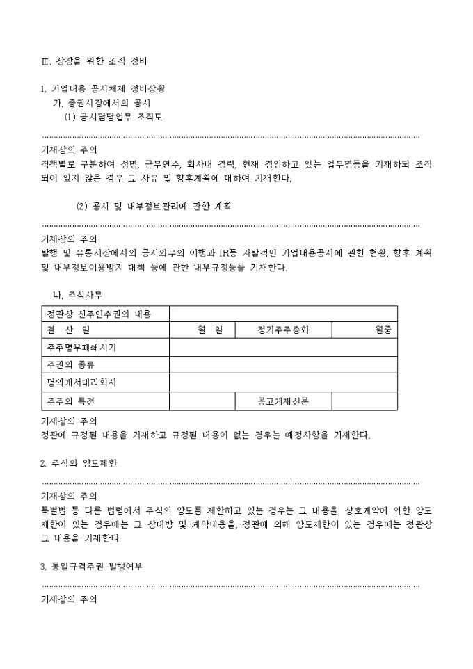 주권예비상장심사청구서(추가서식)입니다. 주권 예비 상장 심사시 필요한 기타 항목에 대한 추가 내용분의 서식입니다.