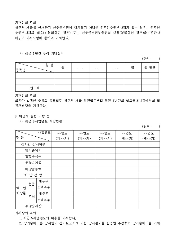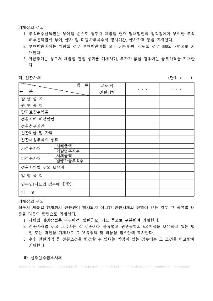 주권예비상장 심사청구서(추가서식)