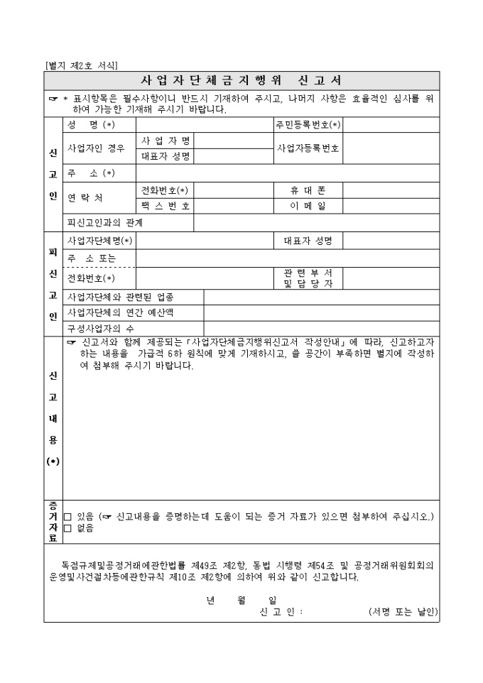 9,000원/월[별지제2호서식]사업자단체금지행위신청서입니다.