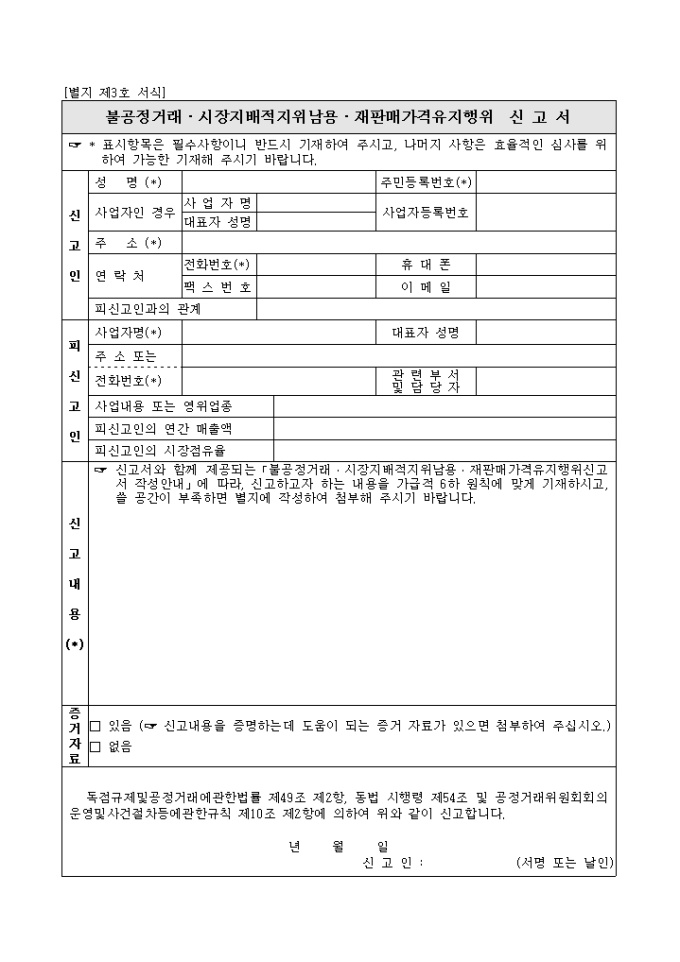 9,000원/월[별지제3호서식]불공정거래.시장지배적지위남용,재판매가격유지행위신고서입니다.