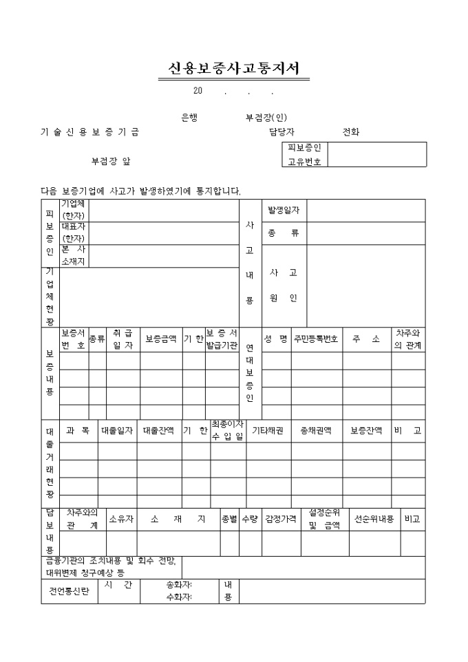 신용보증 사고통지서