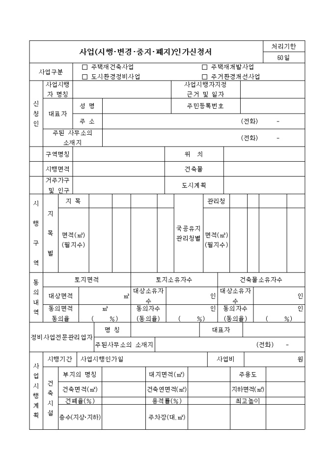 9,000원/월사업(시행,변경,중지,폐지)인가신청서입니다.