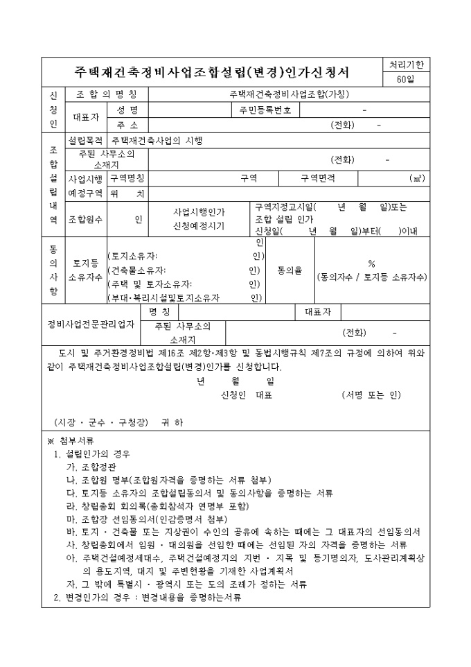 주택재건축 정비사업 조합설립인가 신청서