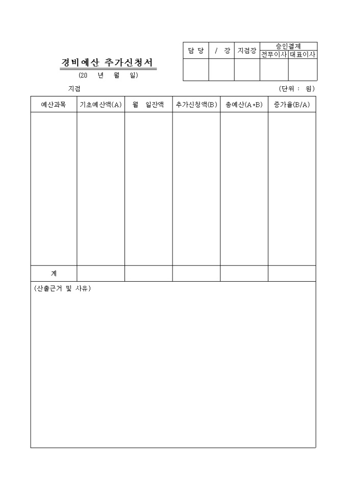 9,000원/월경비예산 추가신청서입니다.