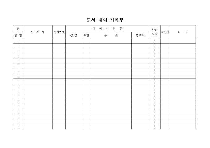 도서대여기록부입니다. 기업내에서 도서를 대여하고자 할때 기록하는 간단한 도서 대여 기록부 양식입니다.