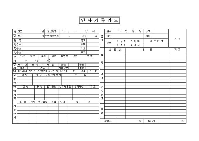 9,000원/월인사기록카드입니다. 회사에서 사용하는 직원들의 기본 신상정보를 관리하는 인사 기록카드 입니다.