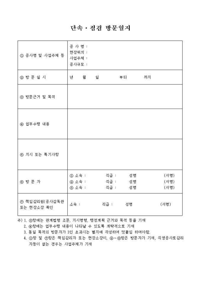 단속 점검 방문 일지