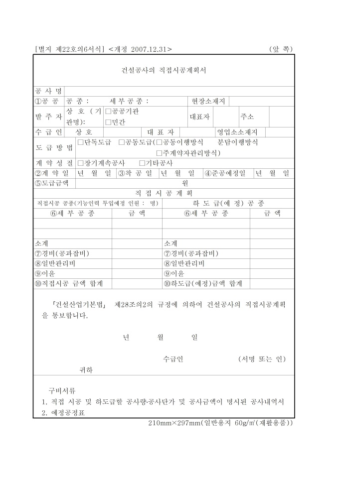 9,000원/월건설공사의 직접시공 계획서 입니다.