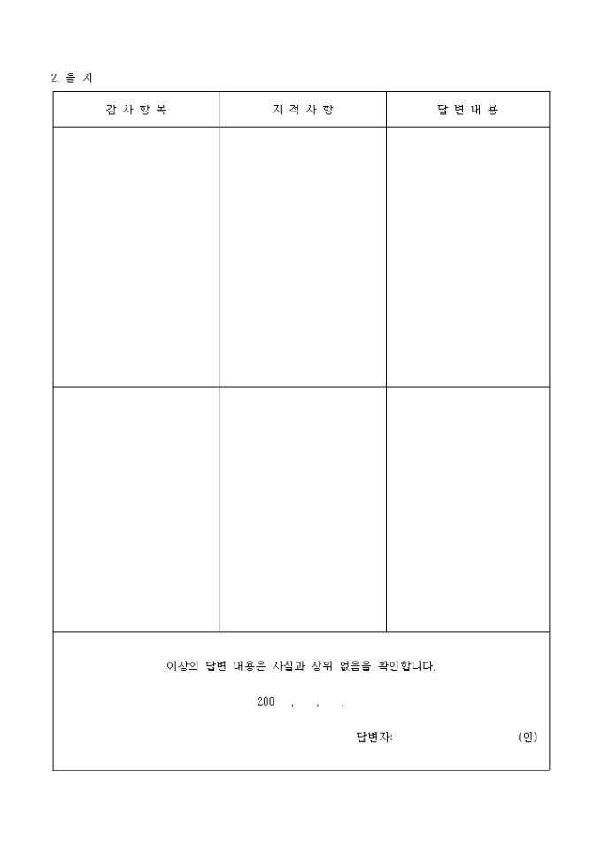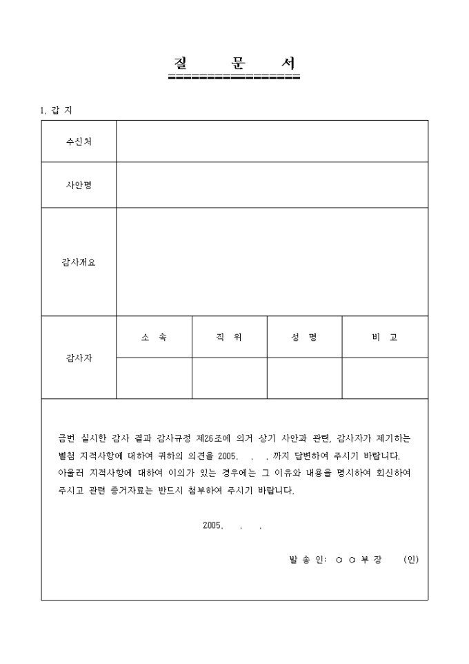 감사결과 질문서
