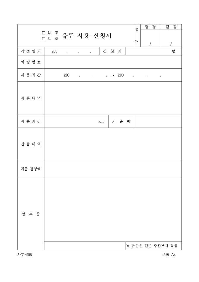 (업무, 보조)유류사용신청서