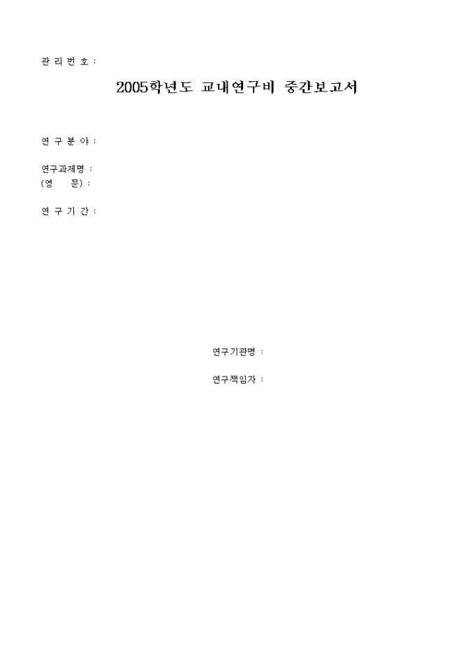 9,000원/월2005학년도 교내연구비 중간보고서