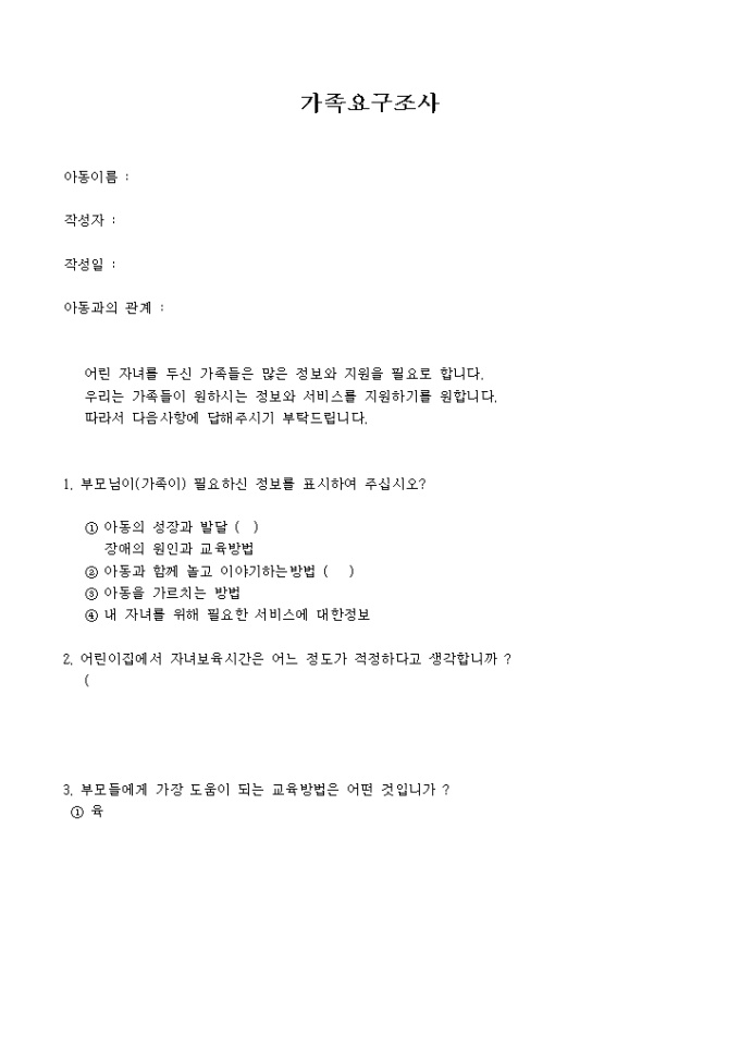 9,000원/월가족요구 조사