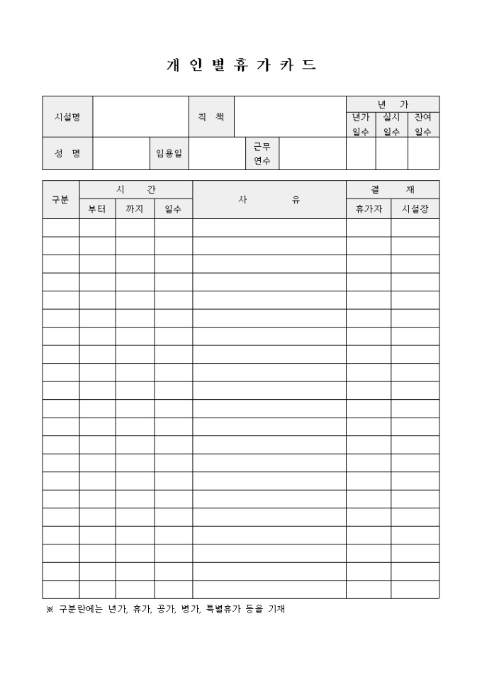 9,000원/월개인별 휴가카드