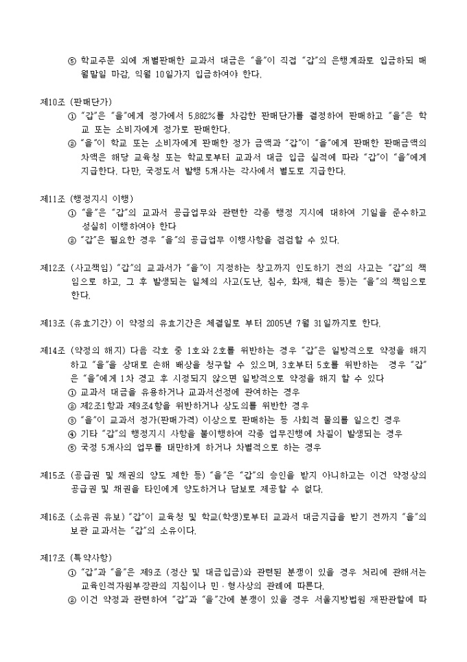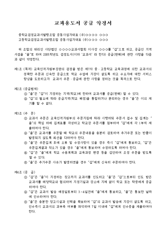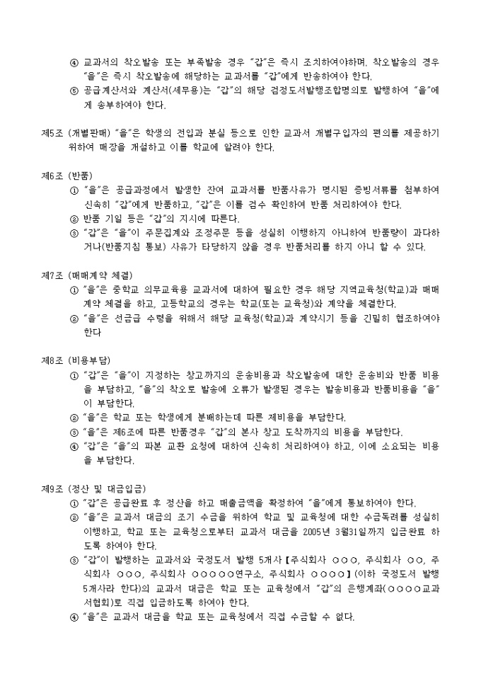 9,000원/월교과용도서 공급 약정서