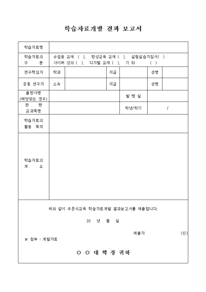 학습자료개발 결과 보고서(대학교재개발)