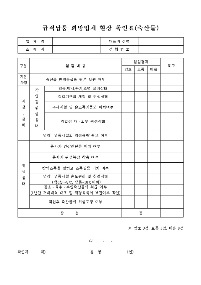 9,000원/월급식납품 희망업체 현장 확인표
