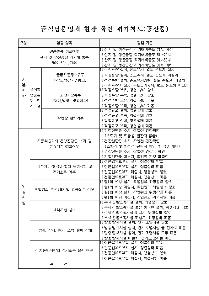 9,000원/월급식납품업체 현장 확인 평가척도