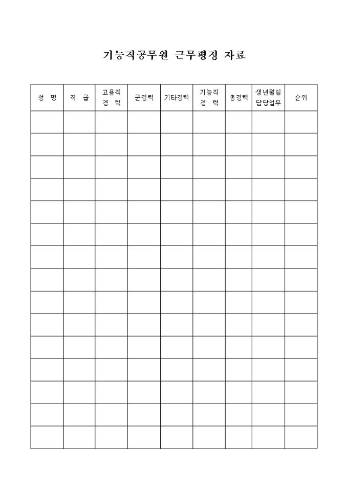 기능직공무원 근무평정자료
