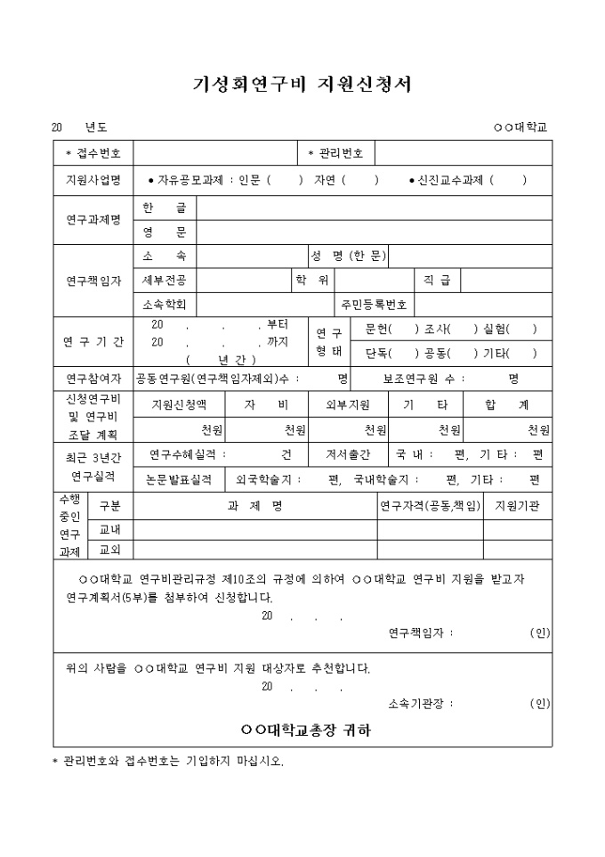 기성회연구비 지원신청서
